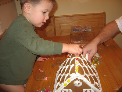 Not much. I figured you were all getting pretty sick of my Thanksgiving post though, so I thought it would be a good idea to give you something new to look at. So these are just some pictures of the kids and our Christmas decorations. Yes, they're finally up! We're usually much more prompt about decorating, but it just wasn't happening this year for some reason. We found a great sale on a kitchen nook, so we treated ourselves to one! Andy had to assemble it, and Abby was his little helper. She mostly just wanted to dig through his tool bag though...